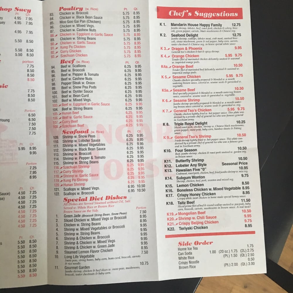Mandarin House Restaurant Menu